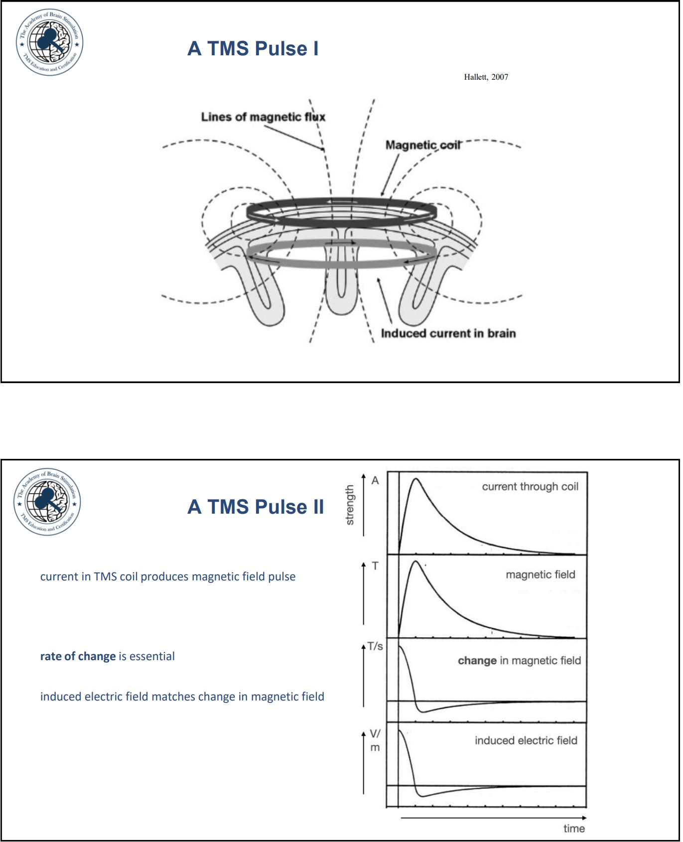 - نرخ تغییر میدان مهمتر از «قدر مطلق» است: «قدرت تحریک» بهطور انتقادی به dB/dt (نرخ تغییر میدان) وابسته است؛ پالسهای کویل هرچه تندتر تغییر کنند، میدان الکتریکی القایی قویتری در بافت تولید میشود.
